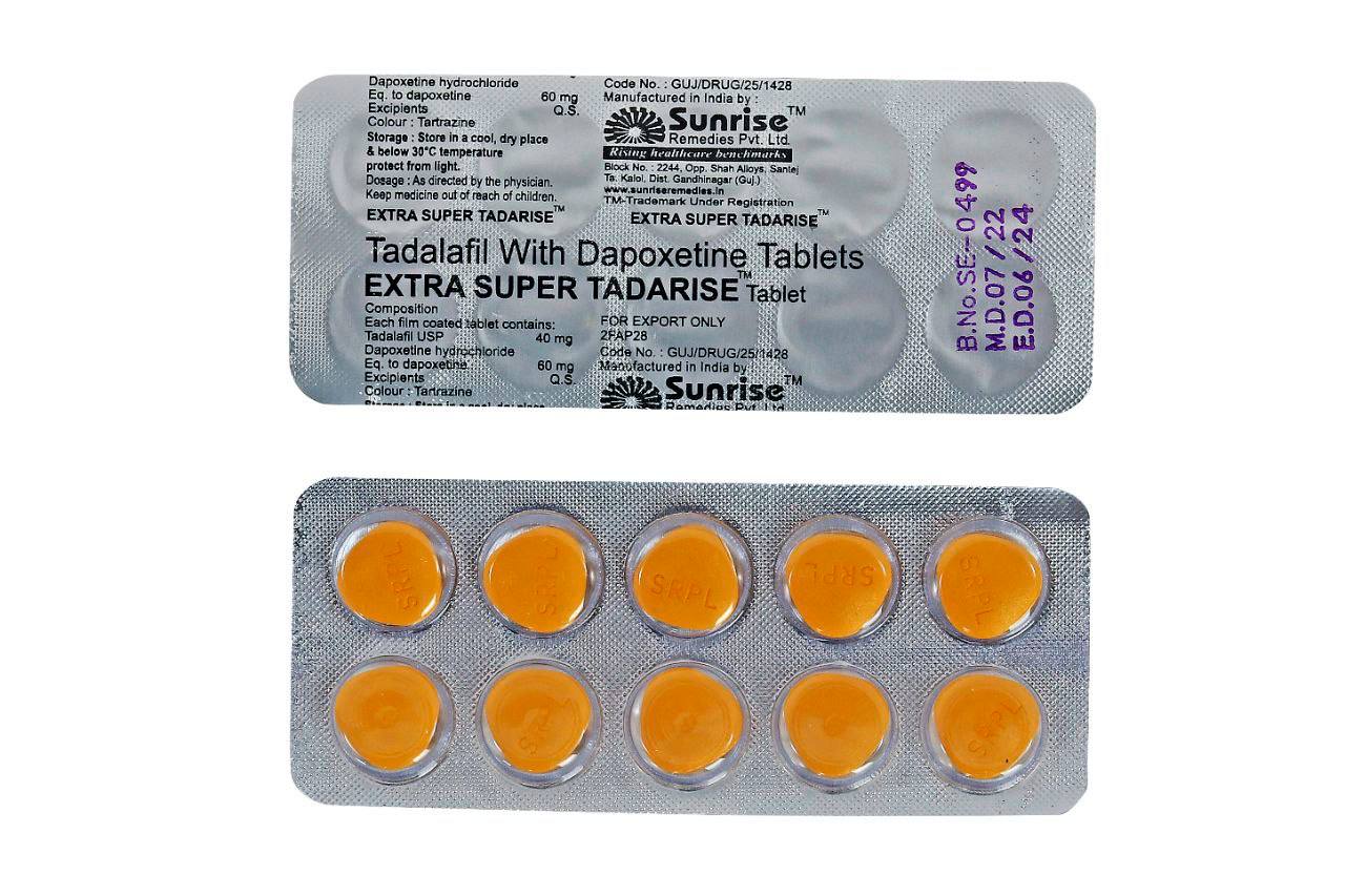 Extra Super Tadarise es un medicamento indicado para tratar dos problemas sexuales comunes en hombres: la disfunción eréctil (DE) y la eyaculación precoz (EP). Contiene dos ingredientes activos: tadalafil y dapoxetina.- Tadalafil: mejora el flujo sanguíneo al pene, facilitando una erección durante la estimulación sexual.