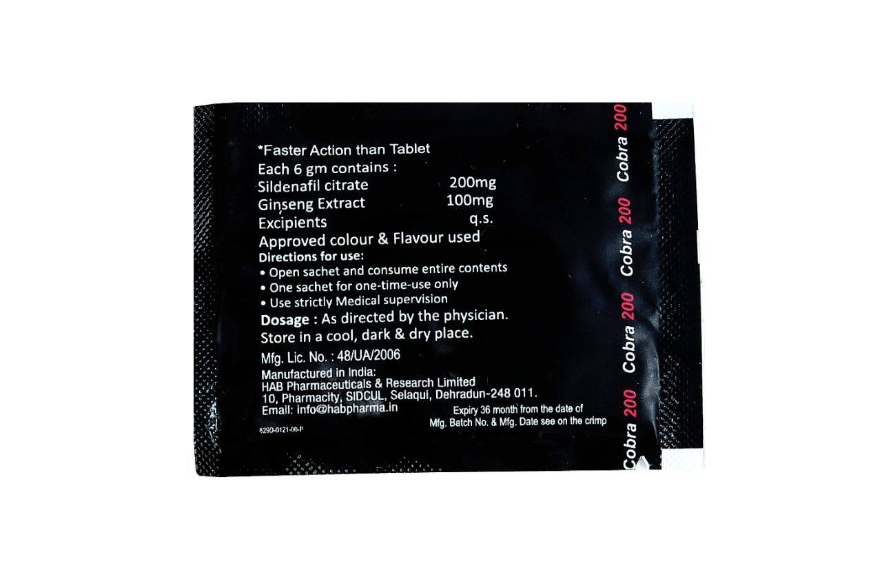 Como con cualquier medicamento, es importante consultar con un proveedor de atención médica antes de tomar Cobra jelly 120 mg para asegurarse de que sea seguro y apropiado para el uso individual.